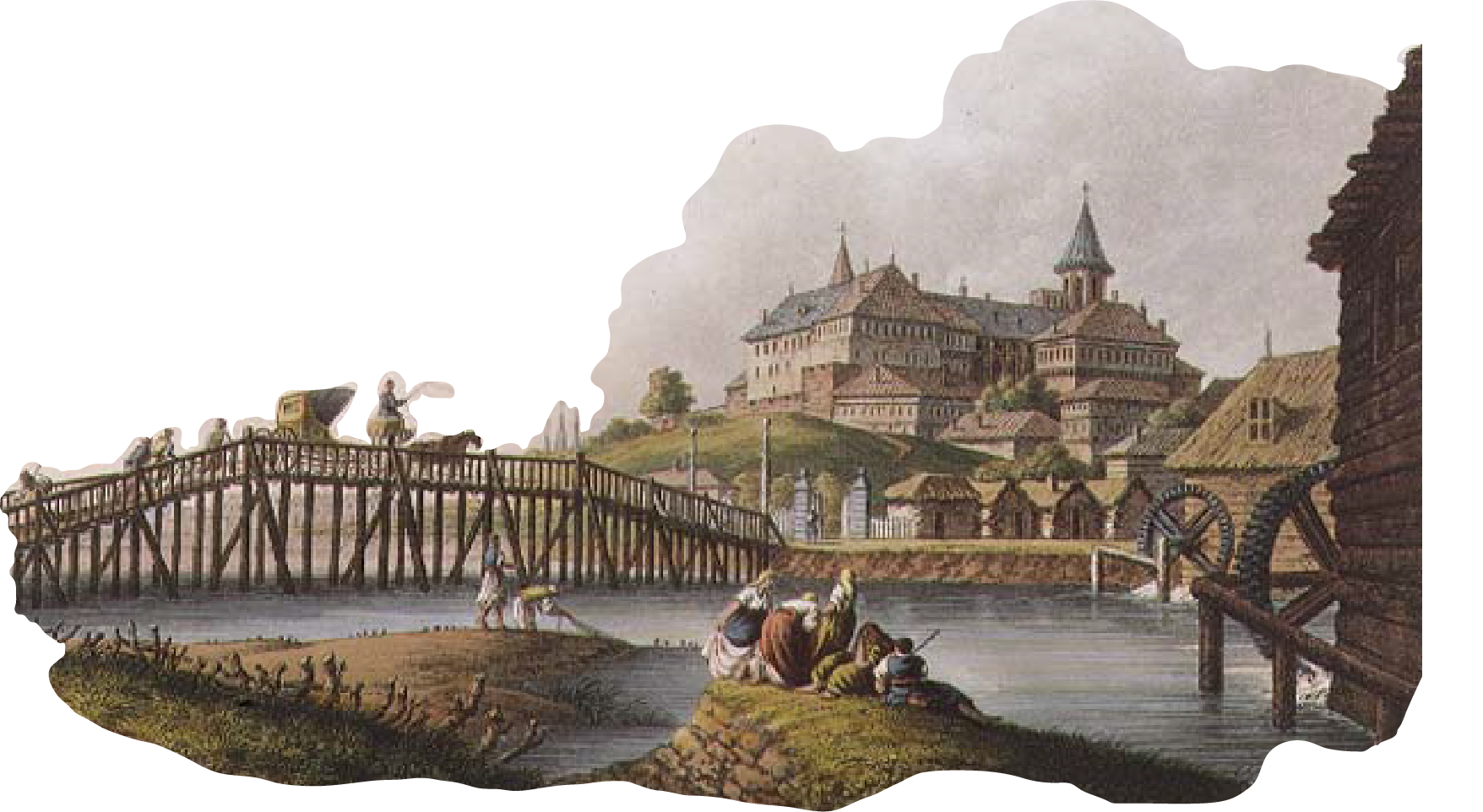 Um 3⁄4 auf 9 Uhr lag neben uns ein kleines Dörfchen. Gleich dahinter fuhren wir eine Anhöhe hinan, wo wir eine ungeheure Menge Schanzen zu sehen glaubten, welche sich in einem weiten Bogen sich um Con-stantinopel herumzog. Allein, als wir dazwischen kamen, schienen sie uns doch eher alte Steinbrüche zu seyn, wodurch dieser unabsehbare Bergrücken durchwühlt war.