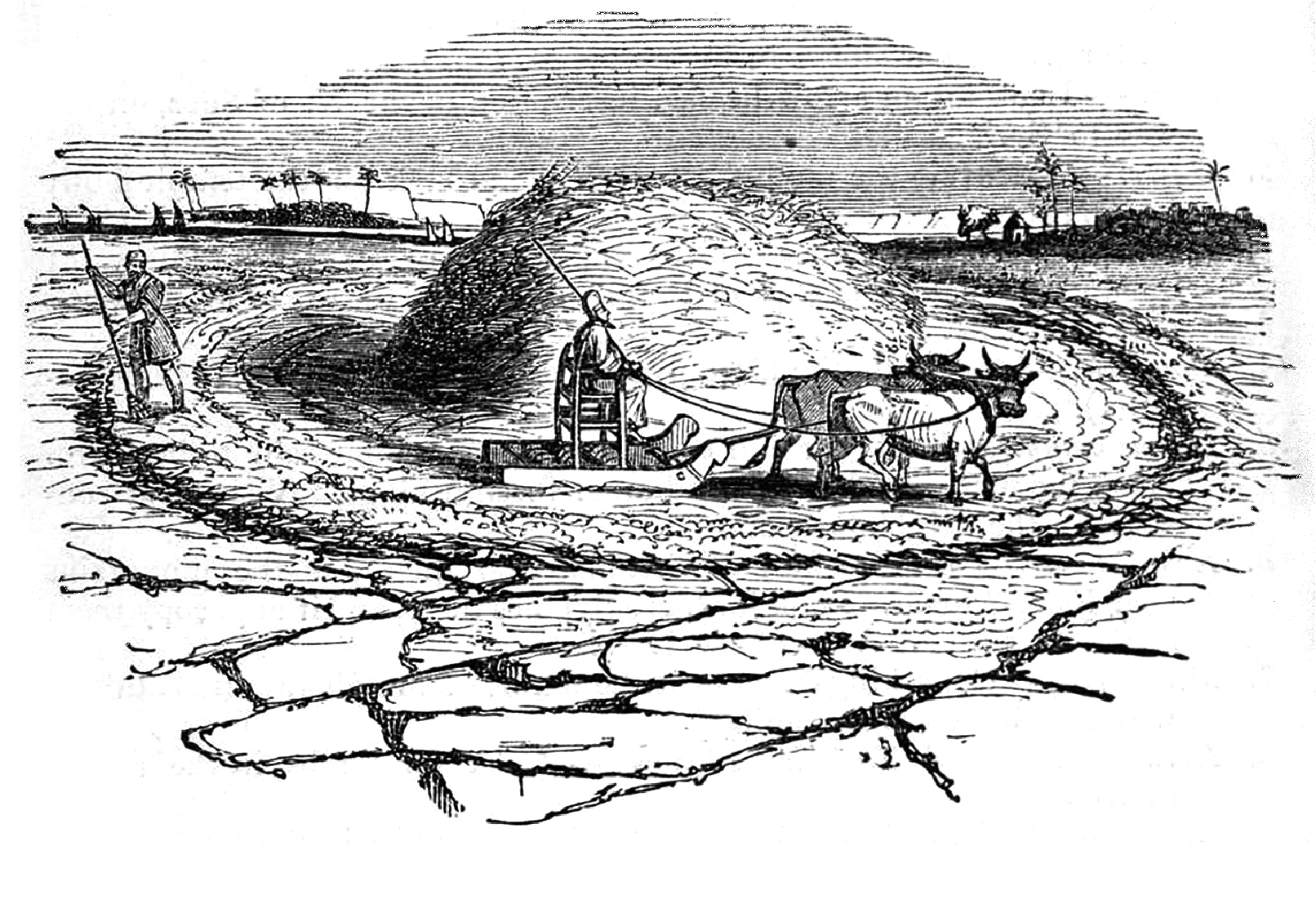 Die Bauern draschen Weizen und Gerste; ein Kopte, mit einem Stocke bewaffnet, war der Dorfinspector und er- theilte herrische Befehle, die ängstlich von den Bauern befolgt wurden. Ein Soldat nahm unentgeldlich das Futter für sein Pferd. Ich war, das sah ich aus Allem, im Lande der unglücklichsten Sklaven, welchen ein fast noch herberes Loos zu Theil wurde, als den Leibeigenen Teutschlands und Russlands.