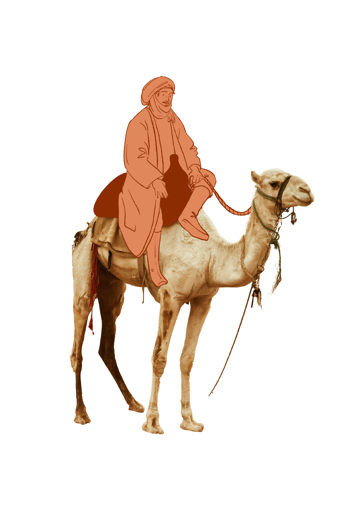 Der Sattel (el Rahhl) hatte vorn und hinten einen fusshohen hölzernen Zapfen; man schlägt das eine Bein in die Queere um den vordern Zapfen herum, und lässt das andere Bein über dessen Fuss herabhängen.